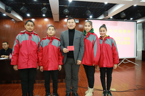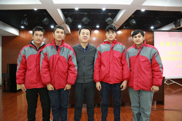 我校舞蹈教学部书记艾塞提·吾买尔与结对子学生合影