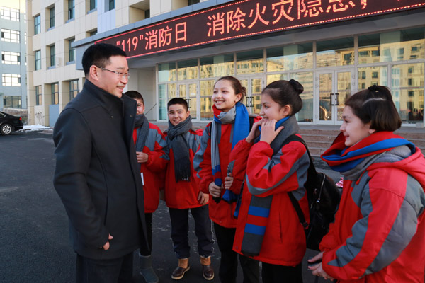 边恺副院长给孩子们围上围巾,嘱咐他们要注意保暖
