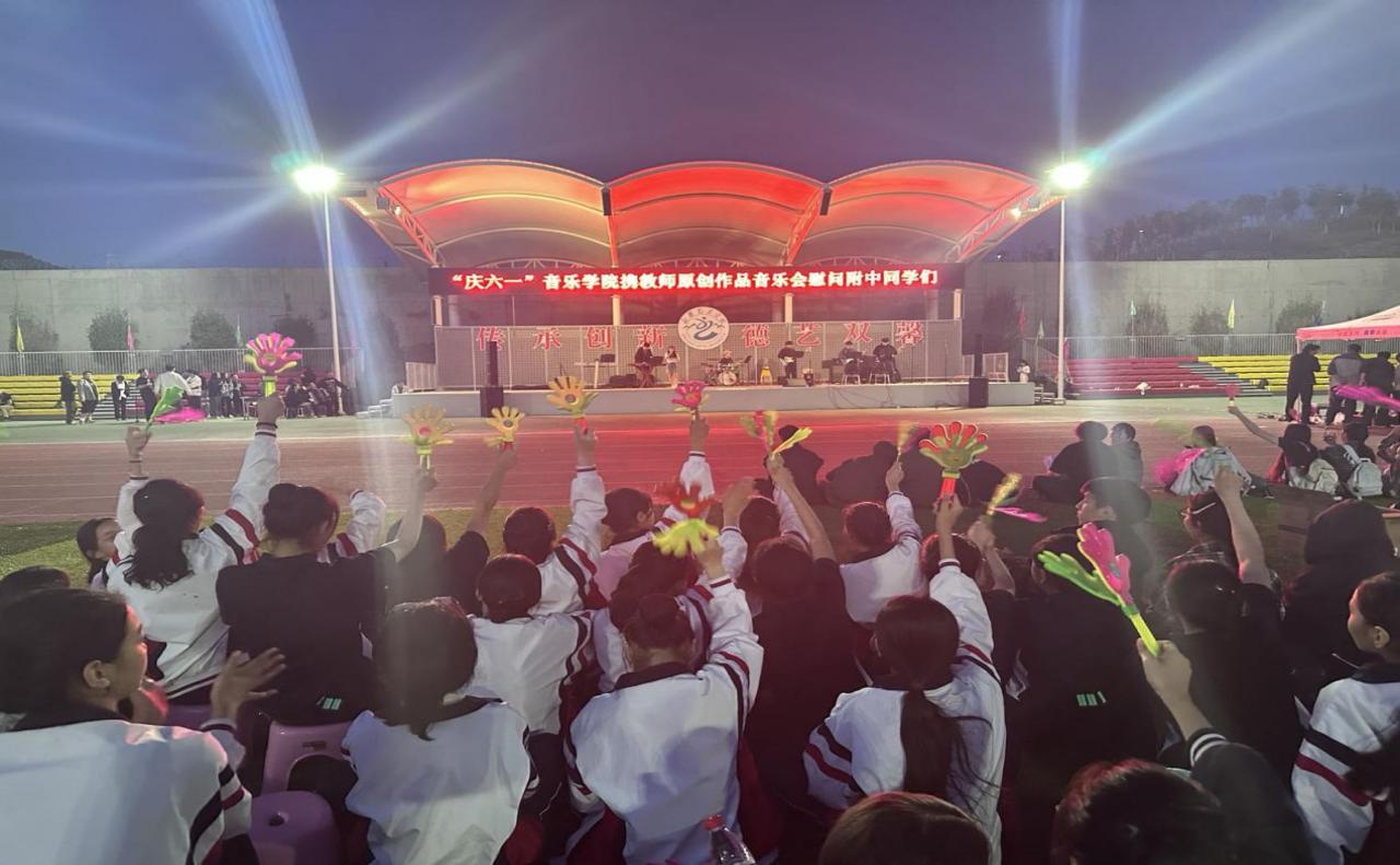 5月30日晚上21:30,新疆艺术学院音乐学院师生在风雨操场为附中全体学生精彩演绎“教师原创作品音乐会”,在“六·一”国际儿童节来临之际慰问附中同学,与附中同学共同庆祝节日。