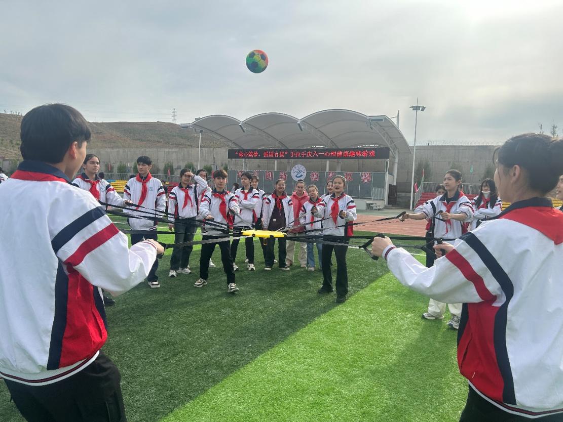5月31日早9:30,在附中风雨操场举行的“童心筑梦 强国有我”手拉手庆“六·一”心理健康趣味游戏拉开主题庆祝活动序幕,附中初一、初二全体学生参加,同学们在丰富多彩的心理游戏中加强团队合作意识,拥抱阳光心态,欢声笑语传遍校园。