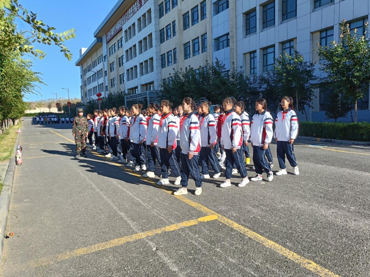 下午15:30,我校全体新生在教学楼前,进行军训队列队形训练。在教官们的带领下,同学们展开队列动作的学习。每一个动作都精准到位,每一个眼神都坚定有力,那昂首挺胸的身影,如葱郁挺拔的白杨,抽枝长叶,朝气蓬发,翻开每一片叶的掌心,都写着青春的脉络。